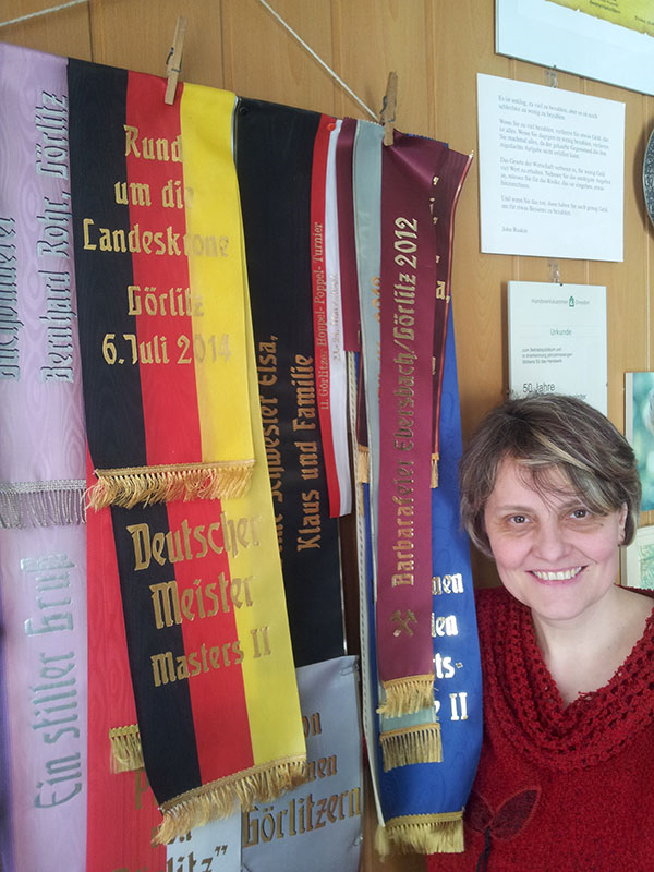 - Prägen von Trauer-, Sieger und GeschenkschleifenGold-, Silber-, Farb-und Blindprägungen auf Büchern, Etuis, Taschen, Servietten u.ä.